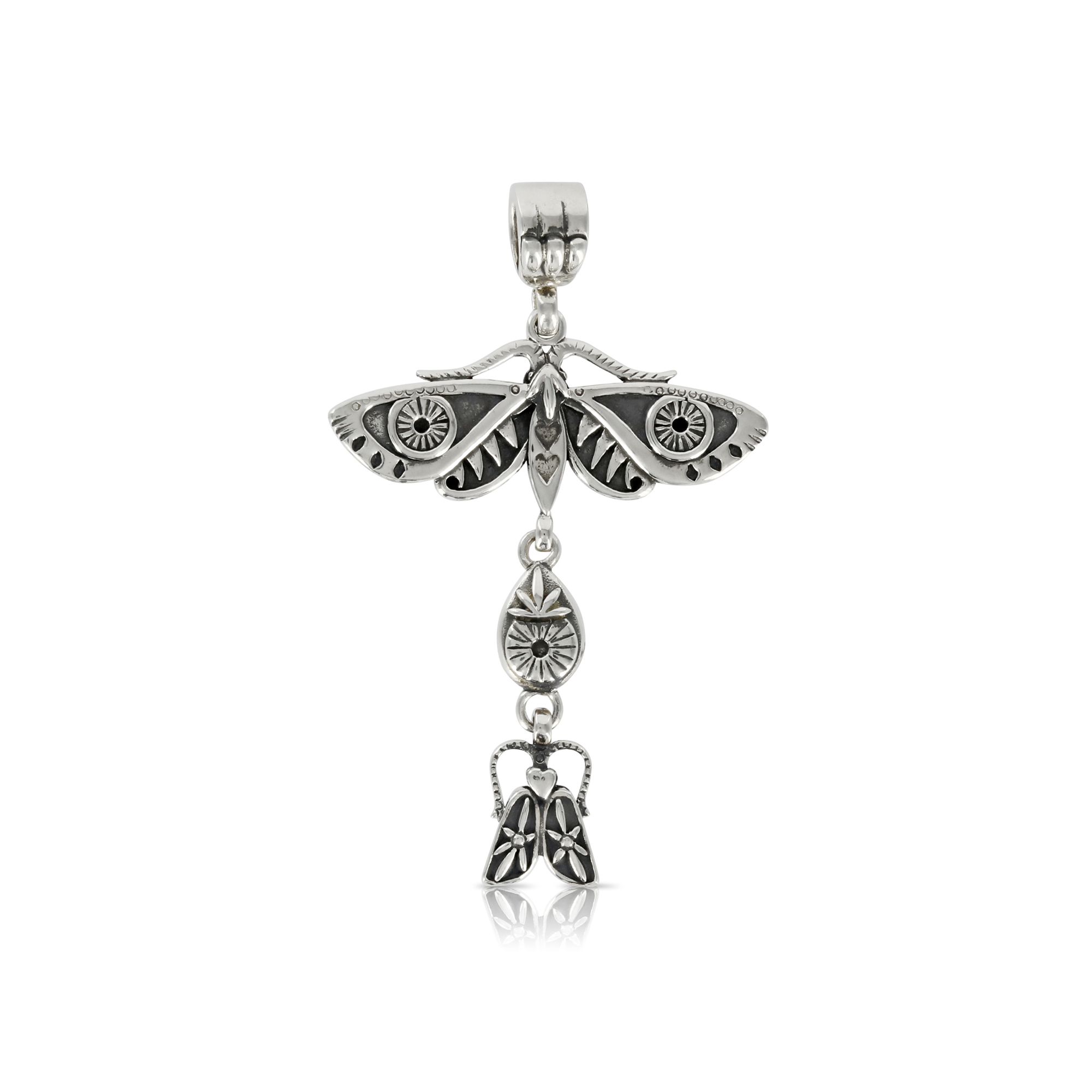 Silver Moth with Prey Bead and Bug Pendant £160.00 This beautiful pendant features a delicately detailed moth together with an ornate bead and a very naughty bug. The pendant loop features a little claw detail. Approximately 6cm including bale. Please order chain separately. Silver Moth with Prey Bead and Bug Pendant quantity Add to basket SKU: P011P Categories: Featured, Pendants Tags: bug, Moth You may also like… Silver Moth Ring £105.00 View Product Silver Moth Bracelet £145.00 View Product Silver Moth Necklace £150.00 View Product Silver Moth with Feather Pendant £135.00 View Product