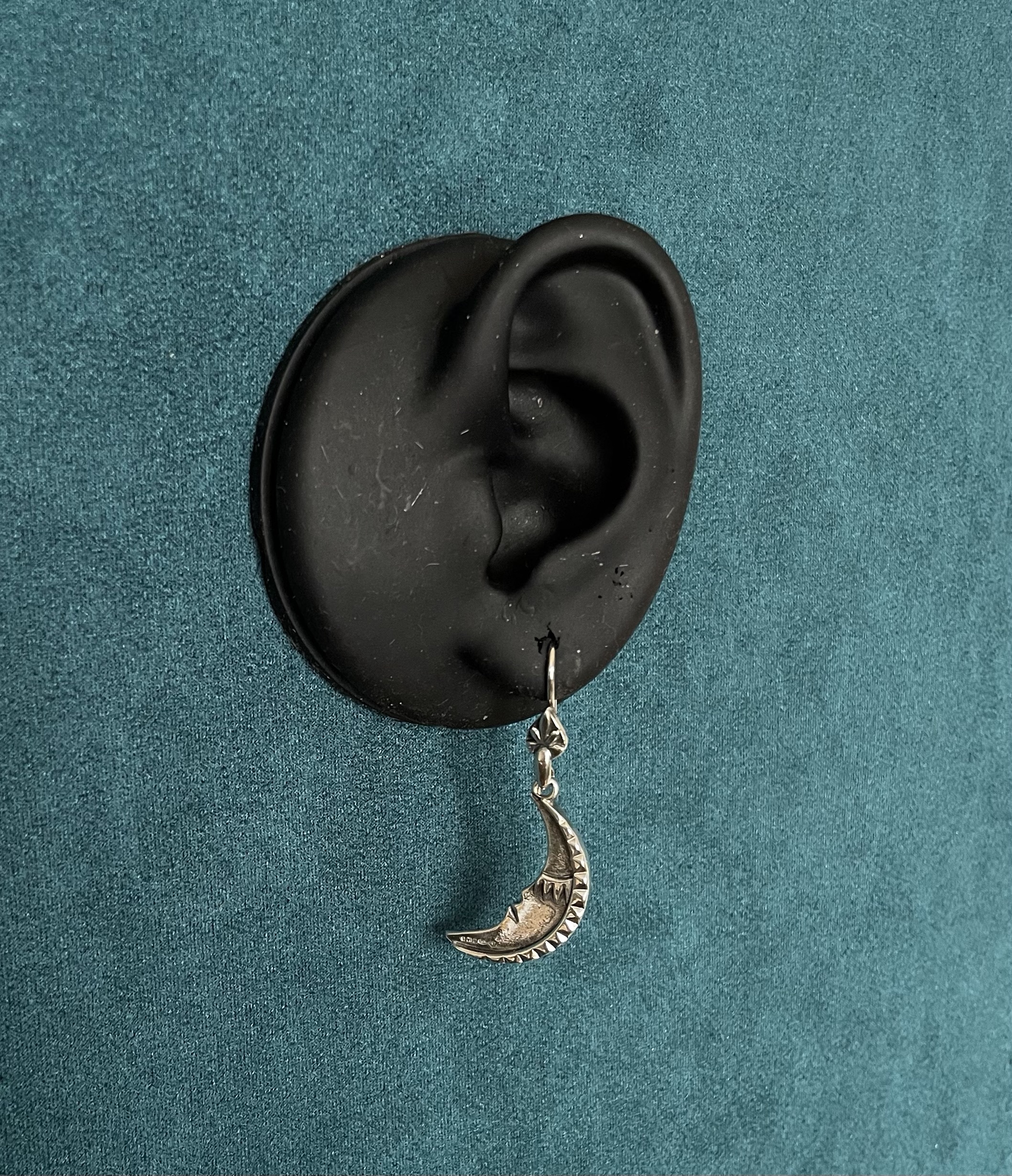 Silver Moon Face Drop Earrings £95.00 The middle of our three moon sizes. Both sides of the moon face feature to make a quirky and beautiful pair of earrings. Overall length 4.5cm. Silver Moon Face Drop Earrings quantity Add to basket SKU: P097E Category: Earrings Tag: Moon Brand: PREY