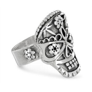 Skull Ring £140.00 This gorgeous skull curves round the finger and is really comfortable to wear. Fine detail includes a star on one shoulder and a heart on the other Size Choose an optionJLNPRTVClear Skull Ring quantity Add to basket SKU: P175R Category: Rings Tags: Ring, skull ring, sugarskull ring Description Additional information Description Additional information Size J, L, N, P, R, T, V
