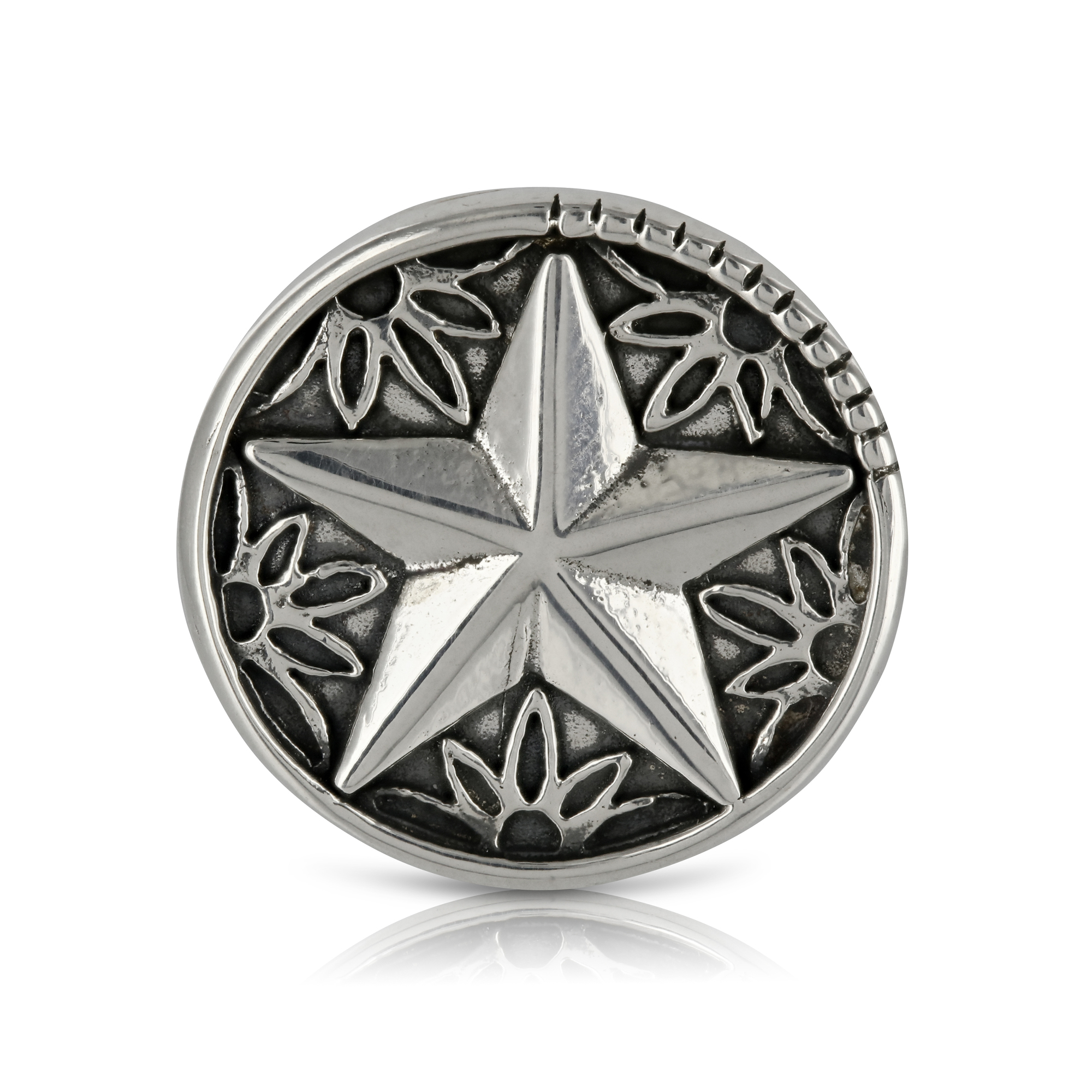 Silver Star Ring £110.00 Chamfered five-pointed star with delicate lotus design detail. Star approximately 2cm across. Size Choose an optionJLNPRTVClear Silver Star Ring quantity Add to basket SKU: P058R Categories: Featured, Rings Tag: Star Additional information Additional information Size J, L, N, P, R, T, V You may also like… Silver Star with Bead and Feather Pendant £155.00 View Product Silver Star Pendant £90.00 View Product
