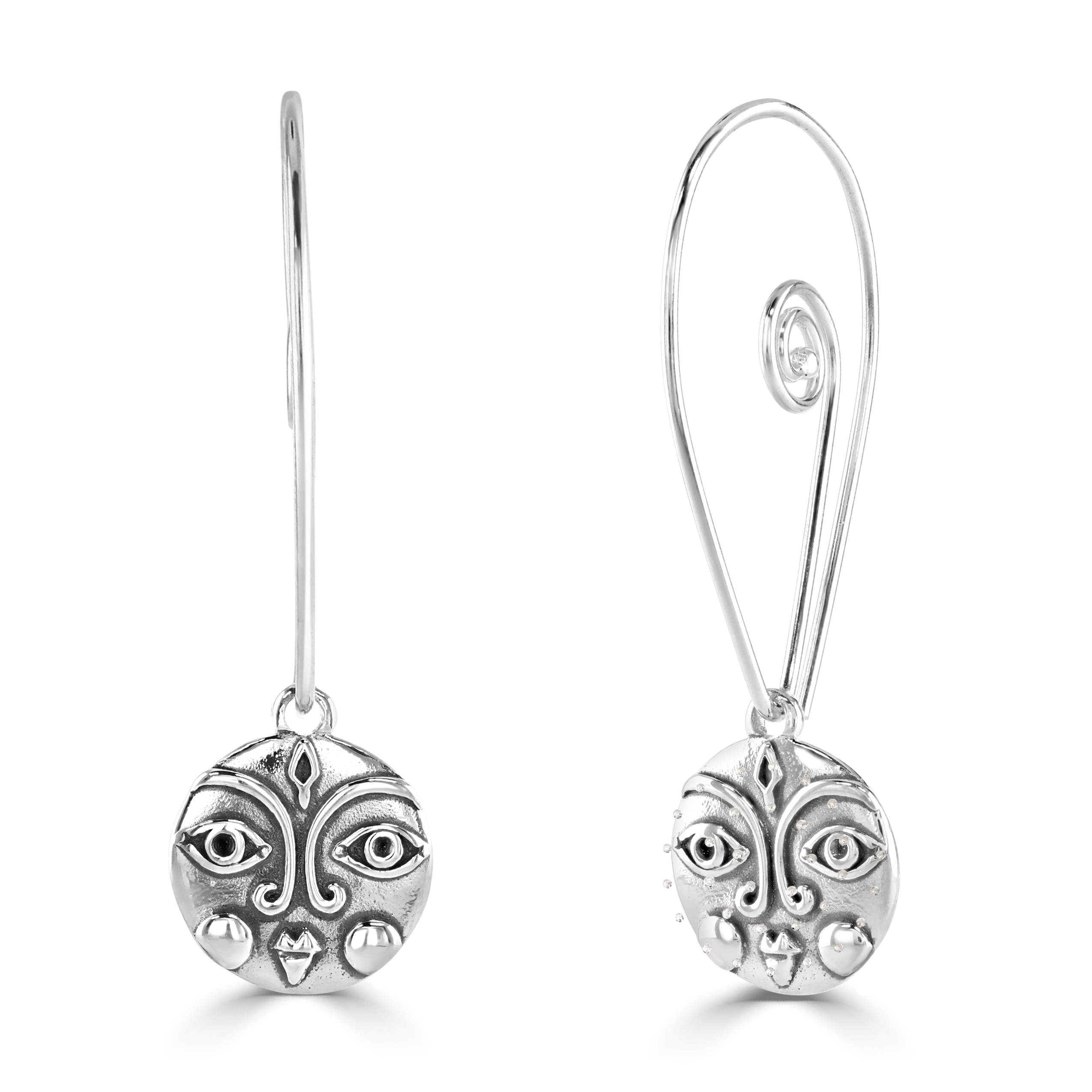 Moon Face drops £75.00 Moon Face drops quantity Add to basket SKU: P243E Category: Earrings Description Description Silver sun drop earrings on silver wire with spiral detail